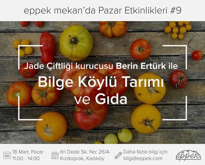 Atalık buğdaylardan taş fırında ekşi mayalı ekmekler üreten Eppek’in Kızıltoprak’taki dükkanında düzenlenecek atölyede, Jade Çiftliği’nde 400’e yakın farklı atalık tohumu ile geleneksel, bilge köylü tarım yöntemlerini kullanan Berin Ertürk ile Bilge Köylü Tarımı ve yöntemleri ele alınacak.