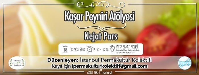 İstanbul Permakültür Kolektifi, Kendi Kendine Yeterlilik Atölyeleri kapsamında, ”Kaşar Peyniri” yapmaya davet ediyor. Atölye’de peynir yapımı, şirden mayası yapımı, lor yapımı ve yoğurt yapımı ele alınacak.