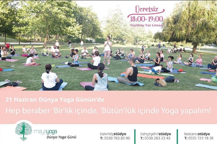 Maya Yoga 21 Haziran’da Yeşilköy Yat Limanı’nda herkese açık bir etkinlikle Birleşmiş Milletler tarafından ilan edilen Uluslararası Yoga Günü kutlamalarına katılıyor.