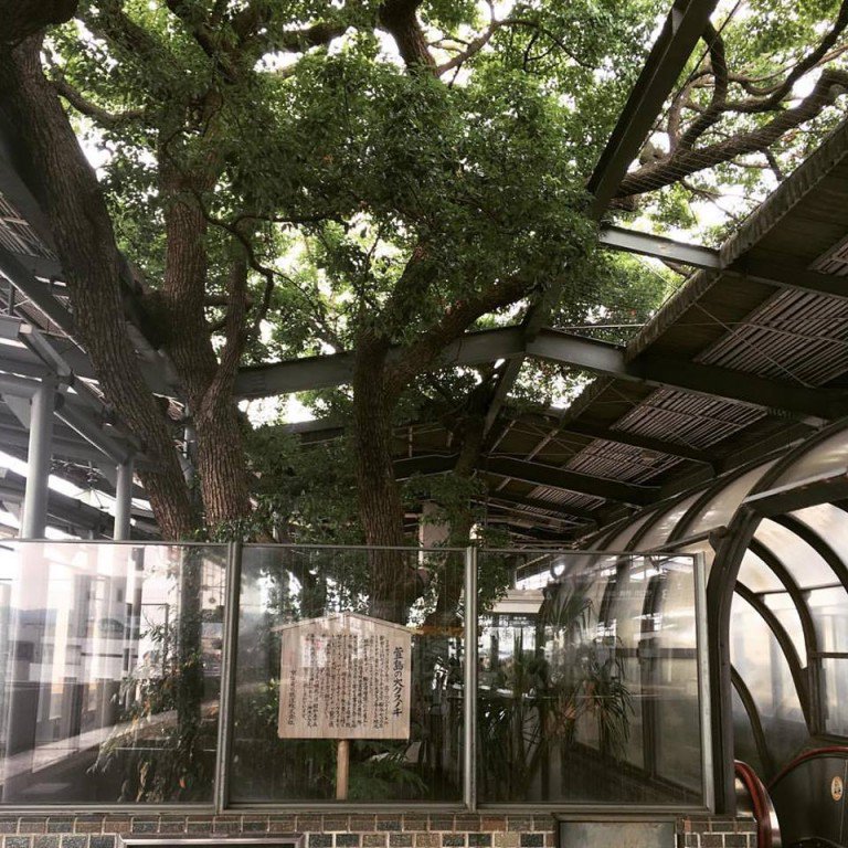 1910 yılında açılan Kayashima istasyonu, yerel kayıtlara göre tarihi çok eskilere giden bir ağacın yanına kurulmuş. Bölgenin nüfusu arttıkça, bu istasyonun da geliştirilmesi gerekmiş. 1972 yılında onaylanan proje ağacın kesilmesini öngörmüş ama 700 yıllık uzakdoğuya özgü bir defne ağacı olan kafur ağacı hala dimdik ayakta.