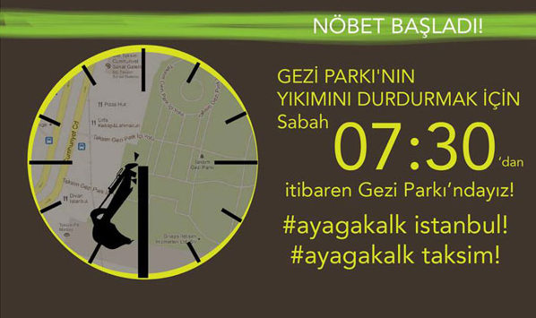 Dün gece 01:00 sularında, twitter birden hareketlendi ve onlarca kişi iş makinelerinin Gezi Parkı'nın Divan Oteli tarafında ağaç köklerini sökerek yıkımı başlattığını yazmaya başladı.