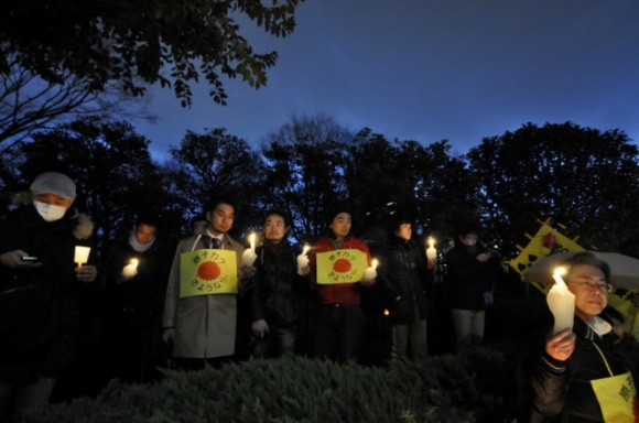 Nao Matsumoto Fukuşima 'kaza'sının yıl dönümünde bizzat ürettiği yüzlerce hareket çeken mumu yanına alıp soluğu Tokyo'daki National Diet binasının önünde almış.