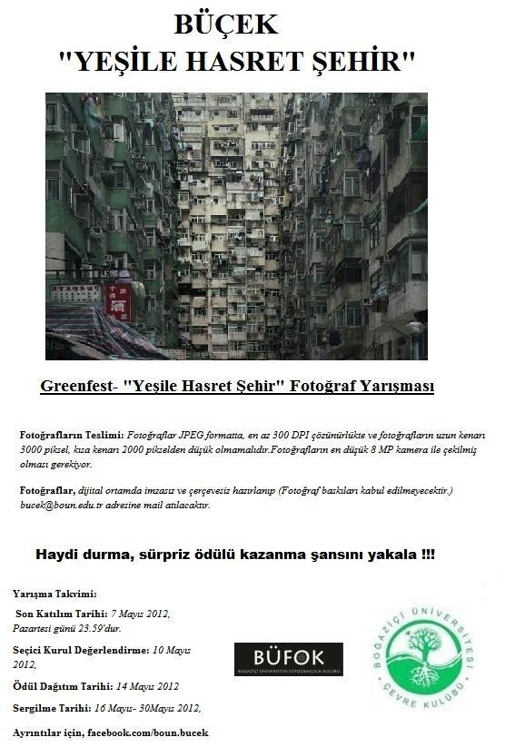 Boğaziçi Üniversitesi Çevre Kulübü ve Fotoğraçılık Kulübü'nün ortaklaşa hazırladığı Yeşile Hasret Şehir fotoğraf yarışması, doğaya sahip çıkılması gerektiğine inanan öğrencilerin karelerini bekliyor.