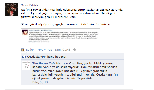 The House Cafe'den cevap geldi