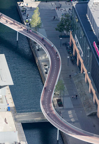 Ulaşım arabalar ile dışarıya doğru taşmaktansa içeriye doğru yaya yolları ve bisiklet kullanımı için yeniden yapılanmış. MacLean, şehir dışında ise sayısı giderek artan devasa rüzgar ve güneş santrallerini fotoğraflamış.