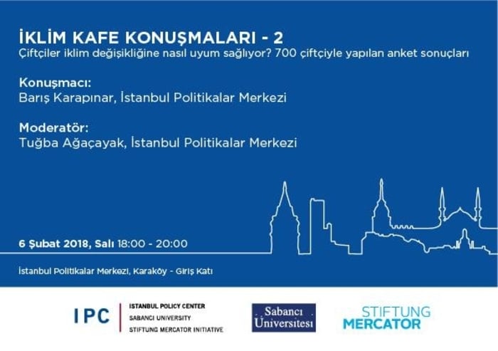 İklim Kafe Konuşmaları serisinin ikincisi, 2017/18 Mercator-İPM Araştırmacısı Barış Karapınar’ın “Çiftçiler iklim değişikliğine nasıl uyum sağlıyor? 700 çiftçiyle yapılan anket sonuçları” başlıklı konuşmasıyla, 6 Şubat saat 17:30’da, İPM Karaköy’de gerçekleşecek.