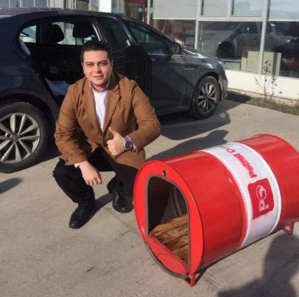 “Hayvanlara yapılanları hepimiz görüyoruz. Üzülmekten fazlasını yapabileceğimi düşündüm ve bu konu üzerine kafa yormaya başladım. İşim gereği bayilere gidip gelirken gördüğüm boş yağ fıçıları dikkatimi çekti, hurdacılara satılan bu fıçıların değerlendirilebileceğini düşündüm.”