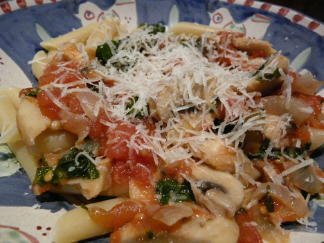 Eşimle geceleri hafif yemekler yemeye karar verdik artık, o yüzden bu tarifi veriyorum size. Hem çabuk, basit, hafif ve üstelik “etsiz”. Geçen yaz hazırladığım son domates konservelerimi de bitirmiş oldum bu yemekle beraber. Seneye daha çok yapmak gerekecek bir sonraki domates mevsimine kadar. Evet, gelelim pazı ve mantar ve makarnamıza…