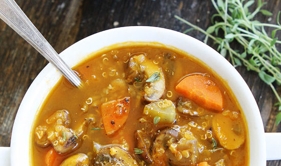 Mantar ve kinoalı sonbahar çorbası