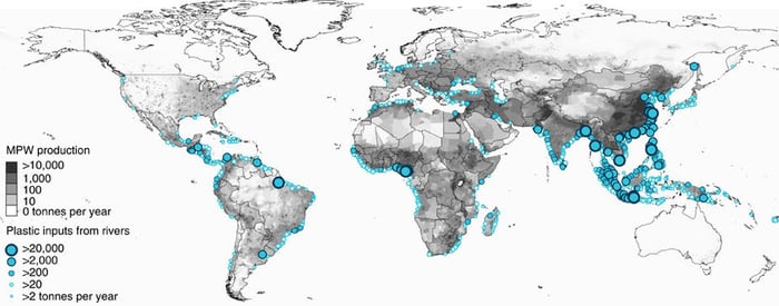 Araştırmaya göre, her yıl sadece okyanuslara 1,15 ile 2,41 milyon ton plastik nehirler tarafından taşınıyor. Okyanusa dökülen yaklaşık 40.760 nehri inceleyen araştırma, çoğunluğu Asya’da bulunan sadece 20 nehrin bu plastiğin üçte ikisini taşıdığını öne sürüyor.