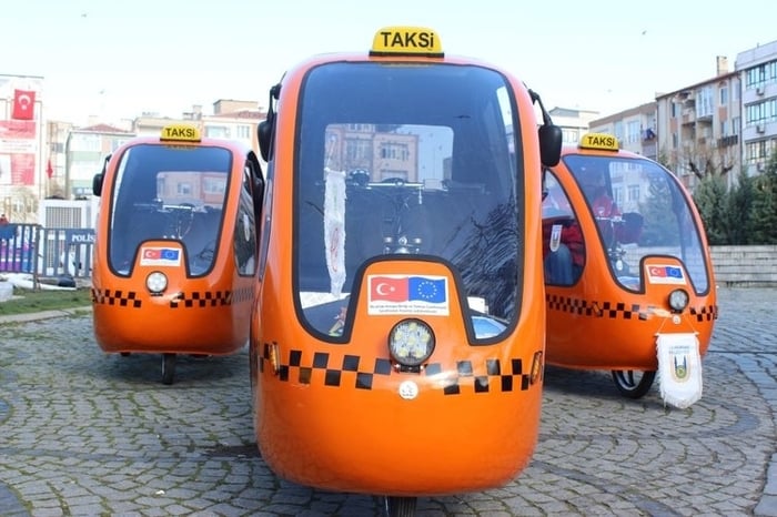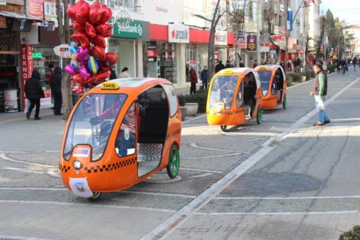 Kırklareli’nin Lüleburgaz ilçesinde karbon salınımını azaltmak için alınan üç adet elektrikli ‘bisiklet taksi’ hizmete başladı. İklim değişikliğiyle mücadele ve bisiklet kullanımına teşvik için Türkiye’de bir ilk olarak alınan elektrikli ‘bisiklet taksi’ler sekiz ay boyunca ücretsiz hizmet verecek.